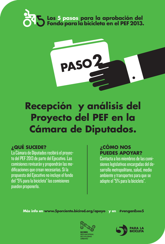 AYÚDANOS a difundir esta postal y a presionar a los miembros de las comisiones legislativas que serán claves para que en el Presupuesto de Egresos de la Federación 2013 se incluya “Fondo del 5% para la bicicleta”.