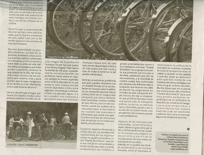 Imagen de la versión impresa del artículo del Dr. Antonio Garza-Sastré «Pueblo Bicicletero: Fantástica opción a un modelo desgastado», publicado en en el diario de circulación nacional Factor.